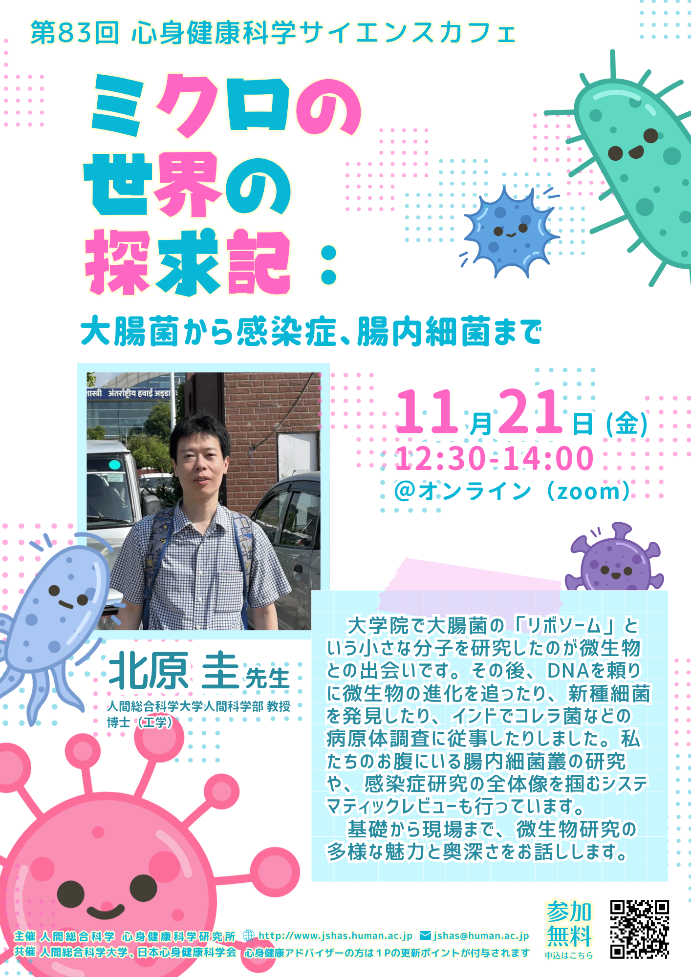 第83回 心身健康科学サイエンスカフェは、お昼の時間帯にオンライン開催いたします。